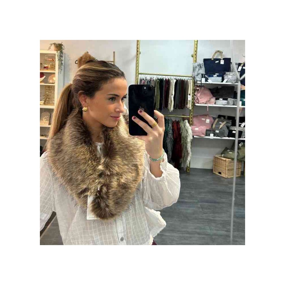 El cuello de pelo es ese complemento que transforma cualquier look de otoño e invierno. Su tacto suave y el cierre con corchete en el centro hacen que sea muy cómodo y fácil de llevar.