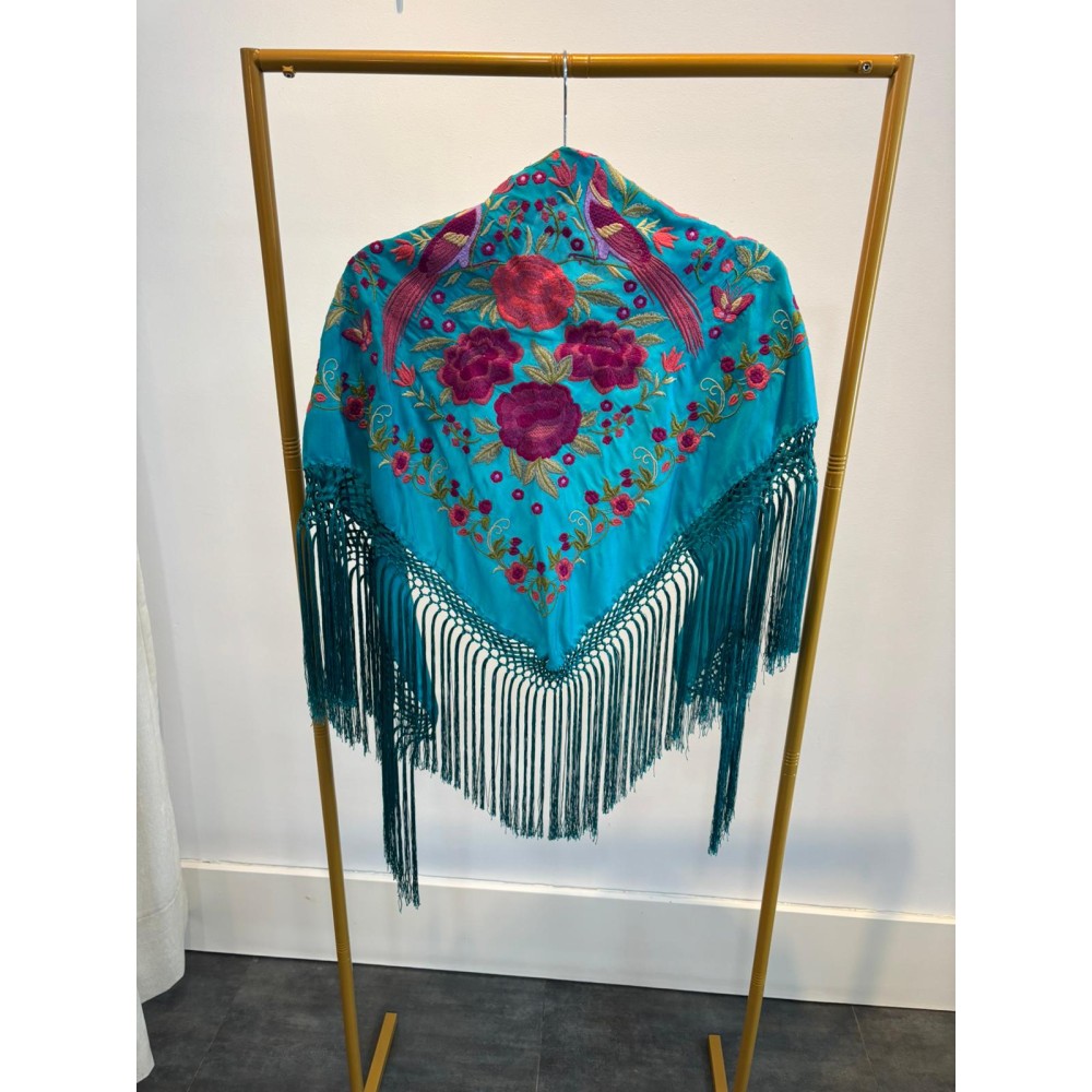 El flecado de nuestros mantones es ejecutado aportando un acabado artesanal distintivo, con bordados en varios colores, dándoles una versatilidad infinita para combinarlos.