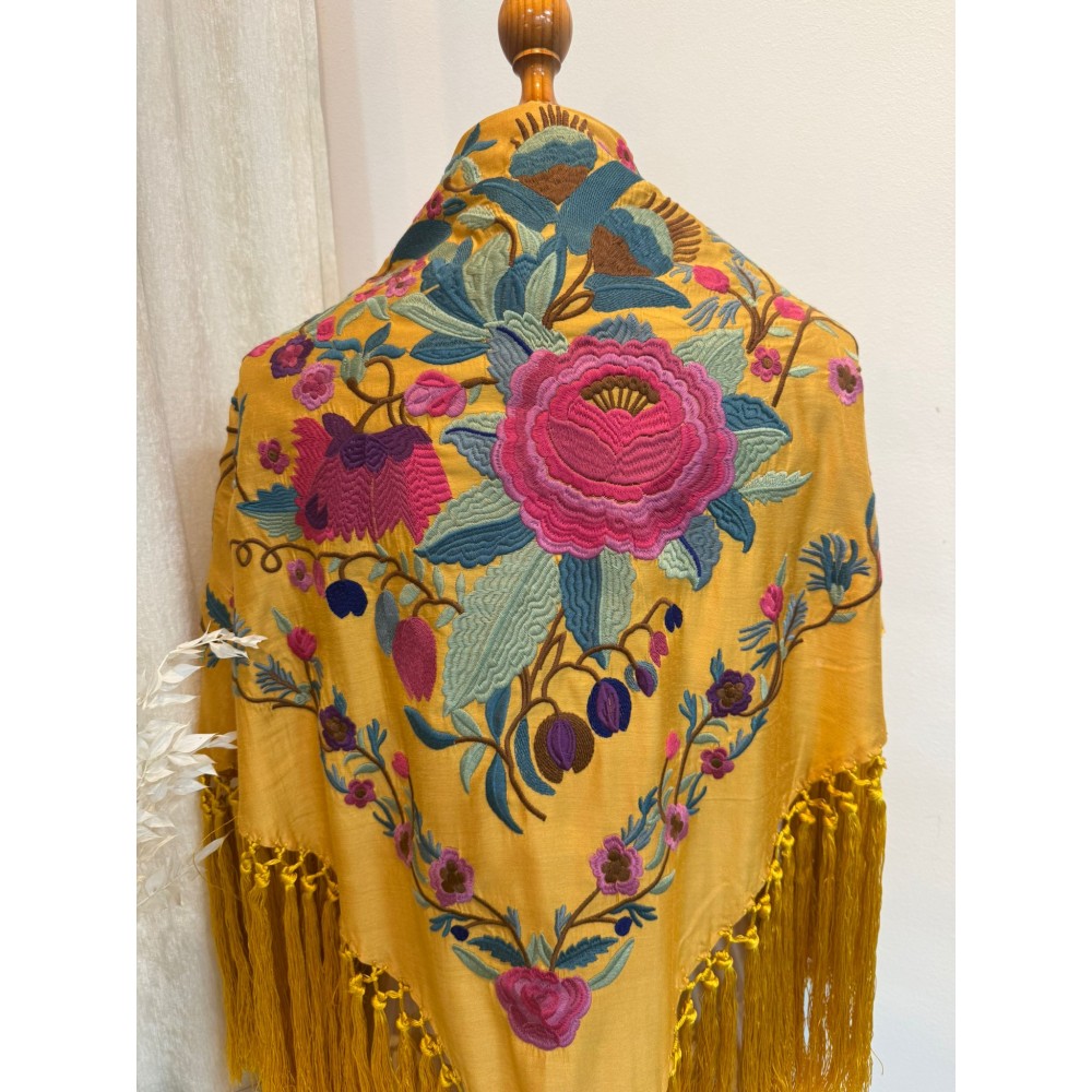 El flecado de nuestros mantones es ejecutado aportando un acabado artesanal distintivo, con bordados en varios colores, dándoles una versatilidad infinita para combinarlos.