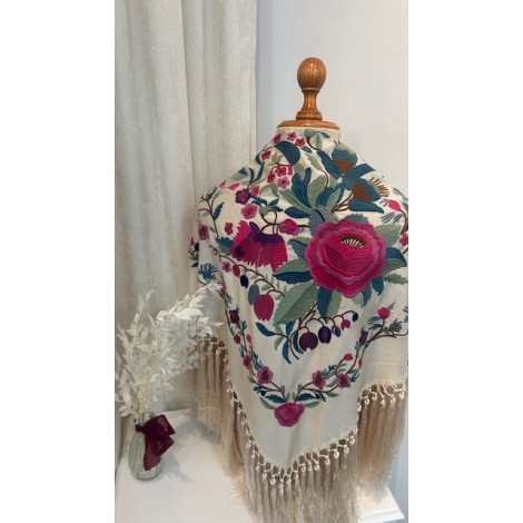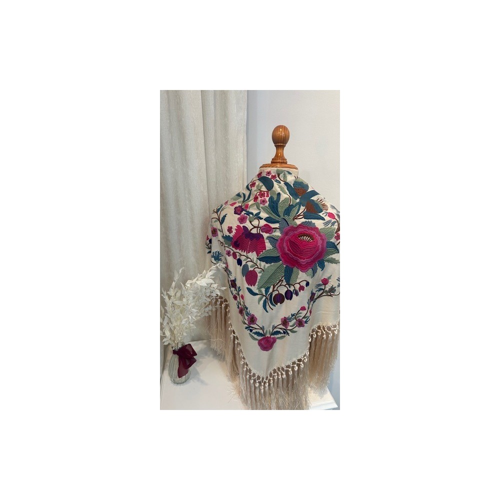 El flecado de nuestros mantones es ejecutado aportando un acabado artesanal distintivo, con bordados en varios colores, dándoles una versatilidad infinita para combinarlos.