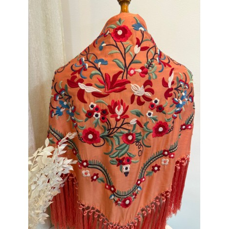 El flecado de nuestros mantones es ejecutado aportando un acabado artesanal distintivo, con bordados en varios colores, dándoles una versatilidad infinita para combinarlos.