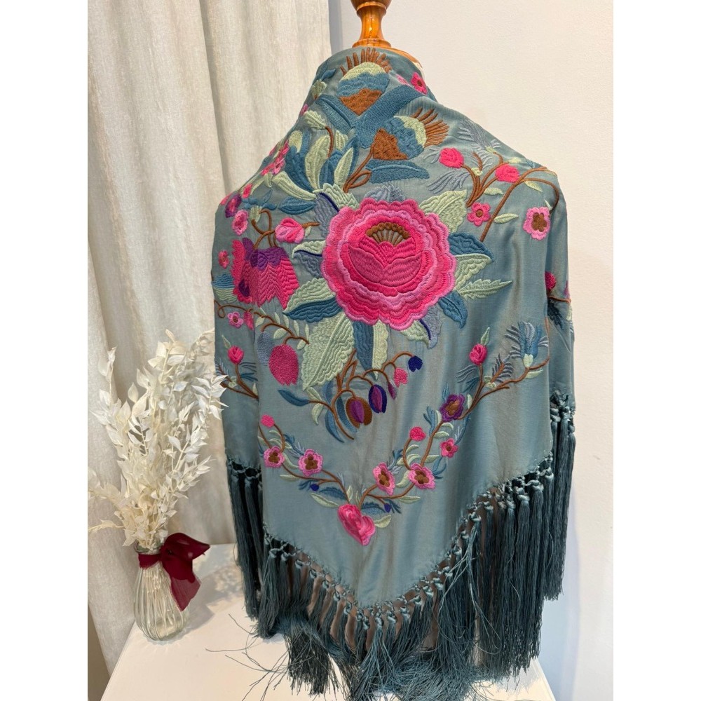 El flecado de nuestros mantones es ejecutado aportando un acabado artesanal distintivo, con bordados en varios colores, dándoles una versatilidad infinita para combinarlos.