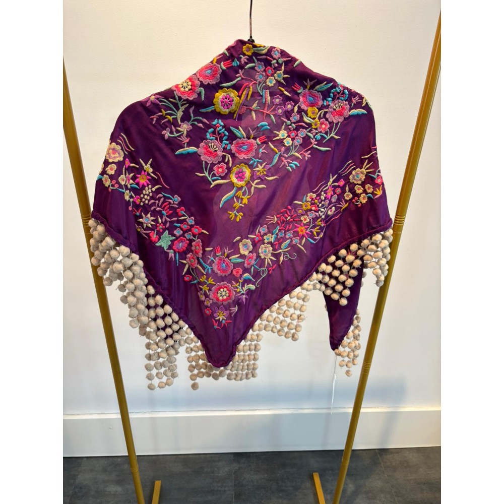 El flecado de nuestros mantones es ejecutado aportando un acabado artesanal distintivo, con bordados en varios colores, dándoles una versatilidad infinita para combinarlos.