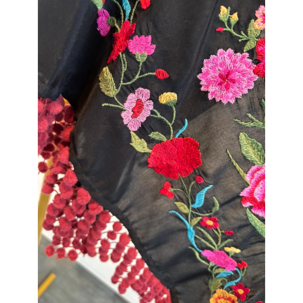 El flecado de nuestros mantones es ejecutado aportando un acabado artesanal distintivo, con bordados en varios colores, dándoles una versatilidad infinita para combinarlos.