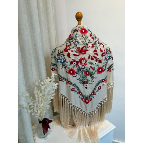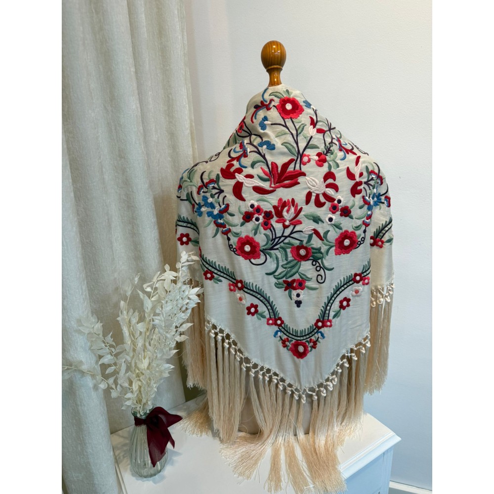 El flecado de nuestros mantones es ejecutado aportando un acabado artesanal distintivo, con bordados en varios colores, dándoles una versatilidad infinita para combinarlos.