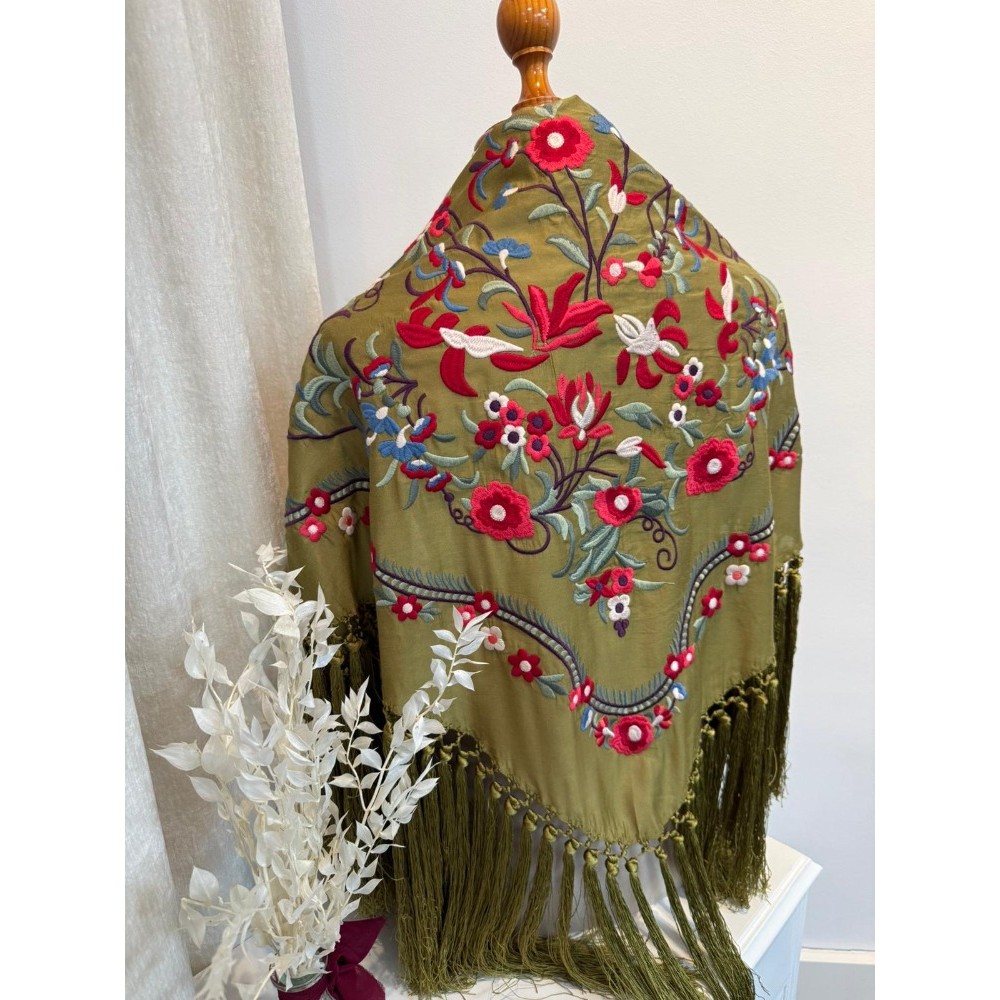 El flecado de nuestros mantones es ejecutado aportando un acabado artesanal distintivo, con bordados en varios colores, dándoles una versatilidad infinita para combinarlos.