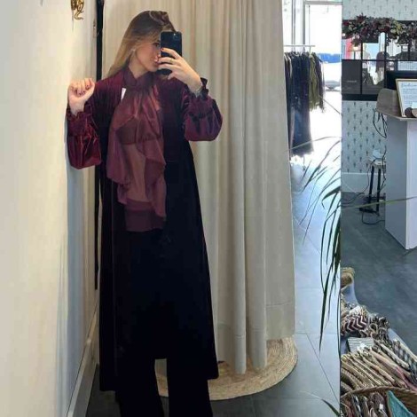PANTALÓN RECTO TERCIOPELO BURDEOS